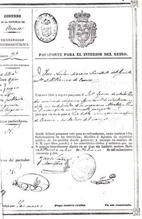 Se le encontró entre sus cosas: el pasaporte, una bula papal del año 1852 a nombre de Manuel Blanco, un romance impreso de enamorados, un calendario lunar y varias cartas.
